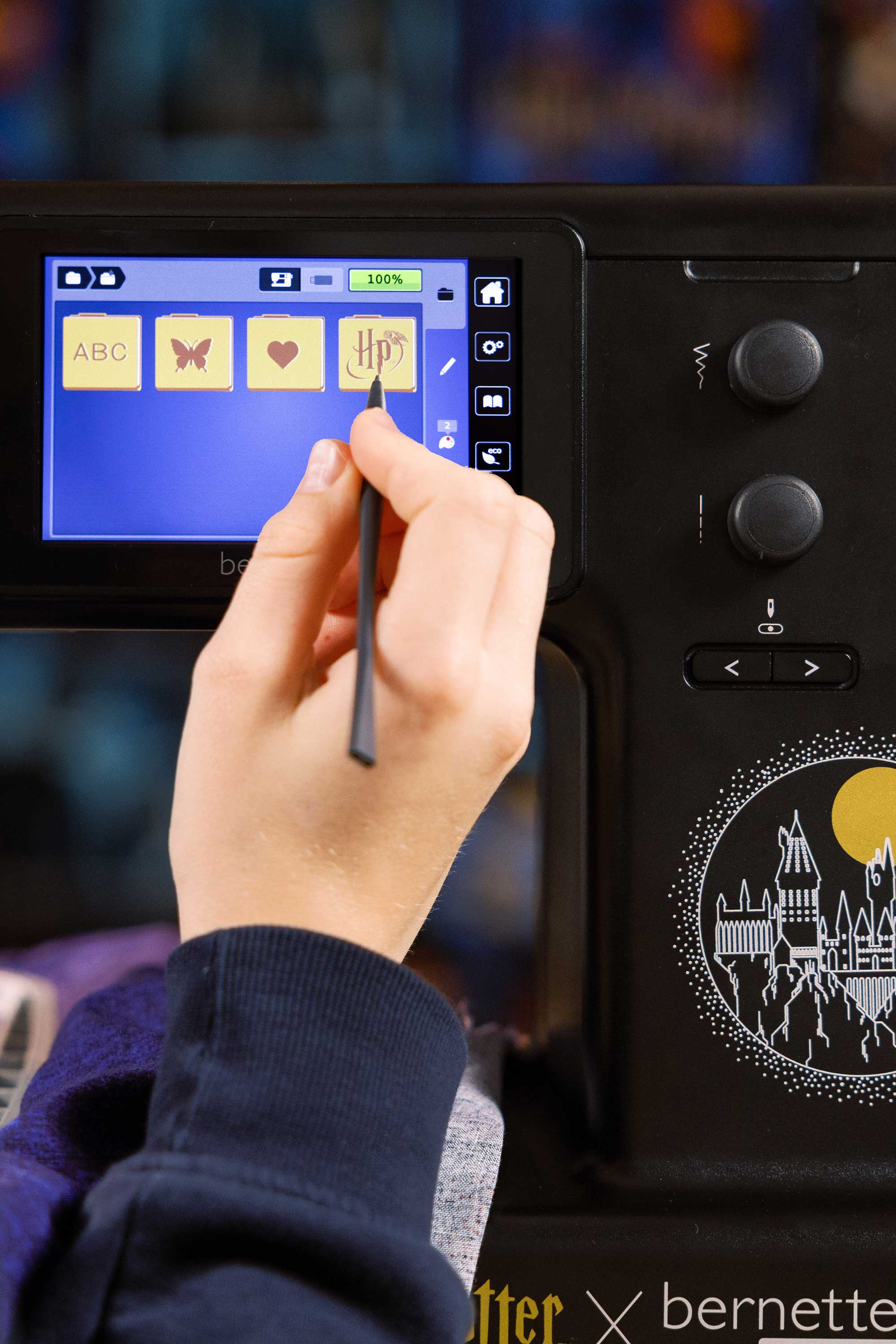 Dans le domaine de la broderie également, la b79 Harry Potter se montre très polyvalente. Elle dispose de 260 motifs de broderie intégrés, dont 42 motifs Harry Potter signés OESD ainsi que 10 autres motifs exclusifs Harry Potter. La grande surface de broderie allant jusqu’à 260 x 160 mm permet de réaliser proprement aussi bien de petits détails que des motifs plus grands. L’écran tactile couleur de 5 pouces permet de modifier directement les motifs sur la machine, de les faire pivoter, de les retourner en miroir, de les redimensionner et de les positionner. Grâce à la reconnaissance automatique du cadre de broderie et au module de broderie inclus, la prise en main est encore facilitée.